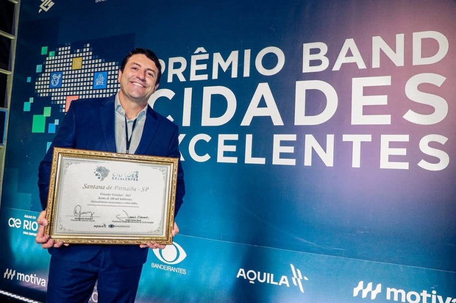 O prefeito de Santana de Parnaíba, Elvis Cezar, comemorou a conquista do município como campeão nacional do Prêmio Band Cidades Excelentes, considerado o maior prêmio de gestão pública do Brasil. A cidade venceu a etapa nacional na categoria municípios com mais de 100 mil habitantes, recebendo o reconhecimento nas áreas de Desenvolvimento Socioeconômico e Ordem Pública.